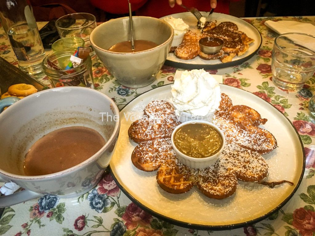 I opted for their famous hot chocolate and a butterscotch waffle which were both absolutely divine. Patrons are presented with a large bowl of hot milk and a selection of chocolate chips to choose from. You are then free to make your own concoction of chocolate and milk to create the perfect hot chocolate.